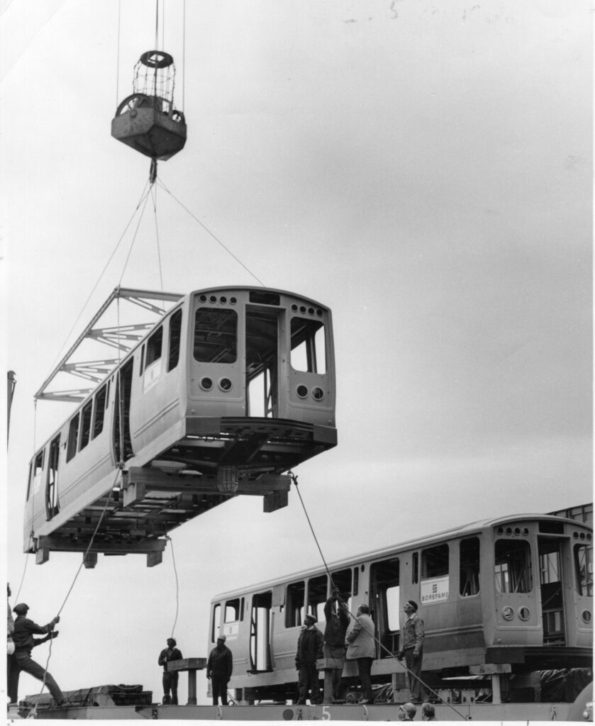 A military helicopter plant builds subway cars